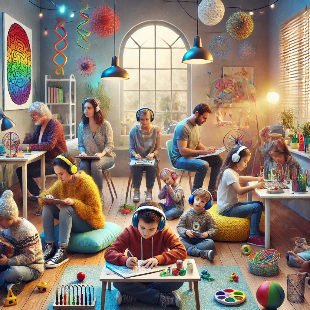 Apoio a indivíduos com TDAH e transtornos do espectro autista, ajudando a explorar seus talentos e lidar com desafios.